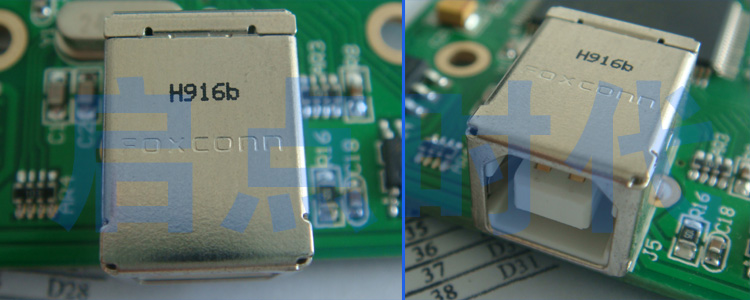 富士康(Foxconn)出口型USB方型接口,采用反包结构,有效避免了USB接口使用一段时间后的松动和接触不良问题